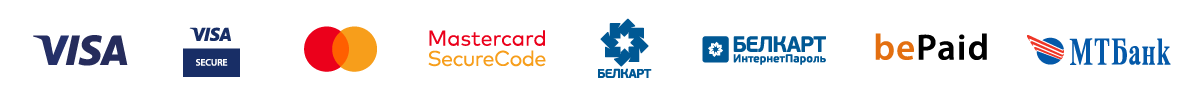 Мы принимаем платежи по следующим банковским картам: Visa, Visa Electron, MasterCard, Maestro, Белкарт.