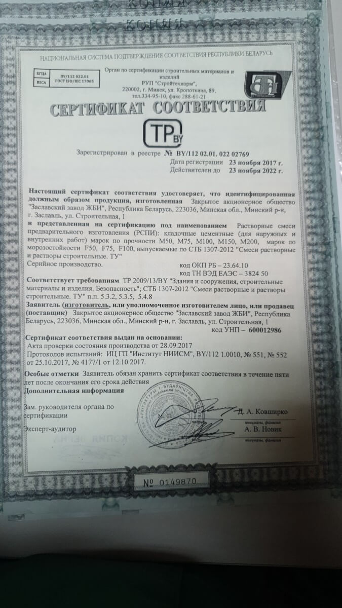 Сертификаты на продукцию Минимальная марка бетона М300 |